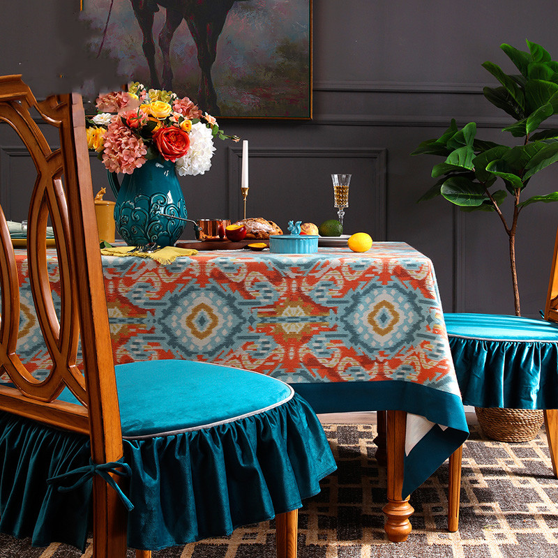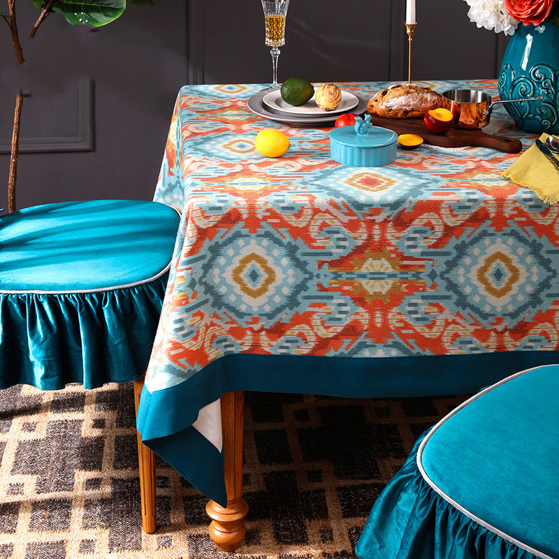 Crafted from fabric, this tablecloth showcases a fashionable and minimalist design. It features a printed pattern in vibrant picture colors, adding a stylish touch to your home decor.